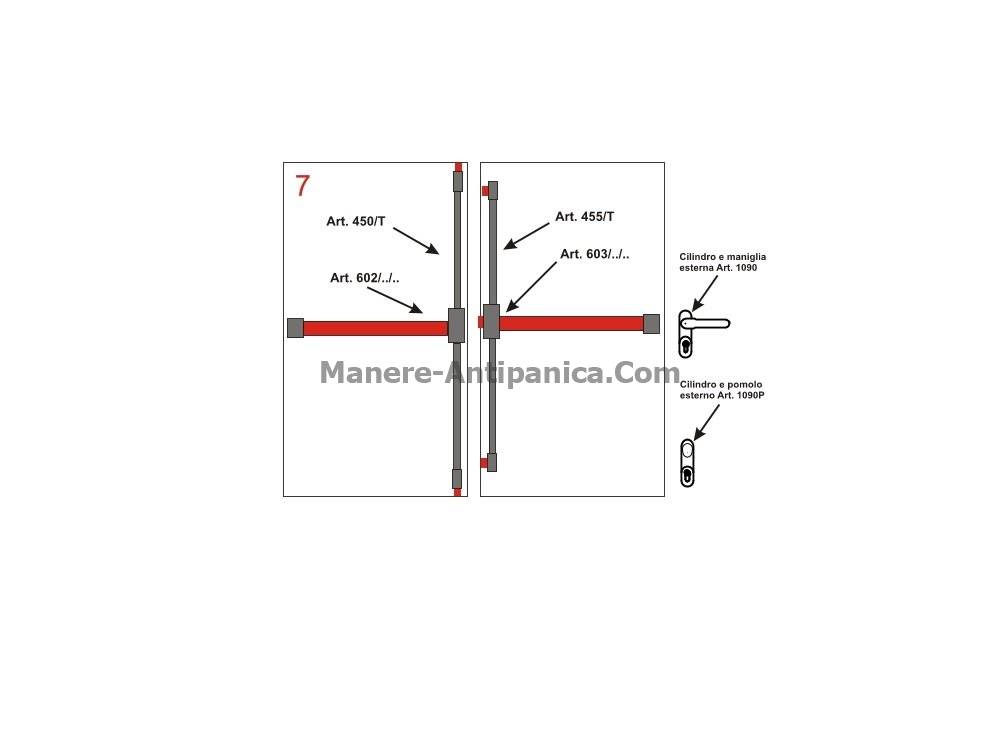 Manere antipanica PUSHBAR 2 canate inch. 5 pct. CU maner ext. |